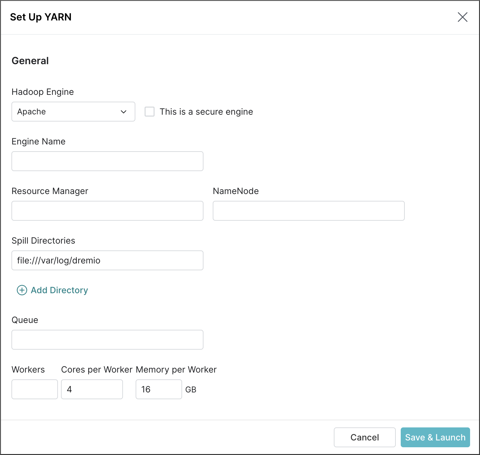 Workers: The number of Dremio executors (containers) to be created on the Hadoop data nodes.