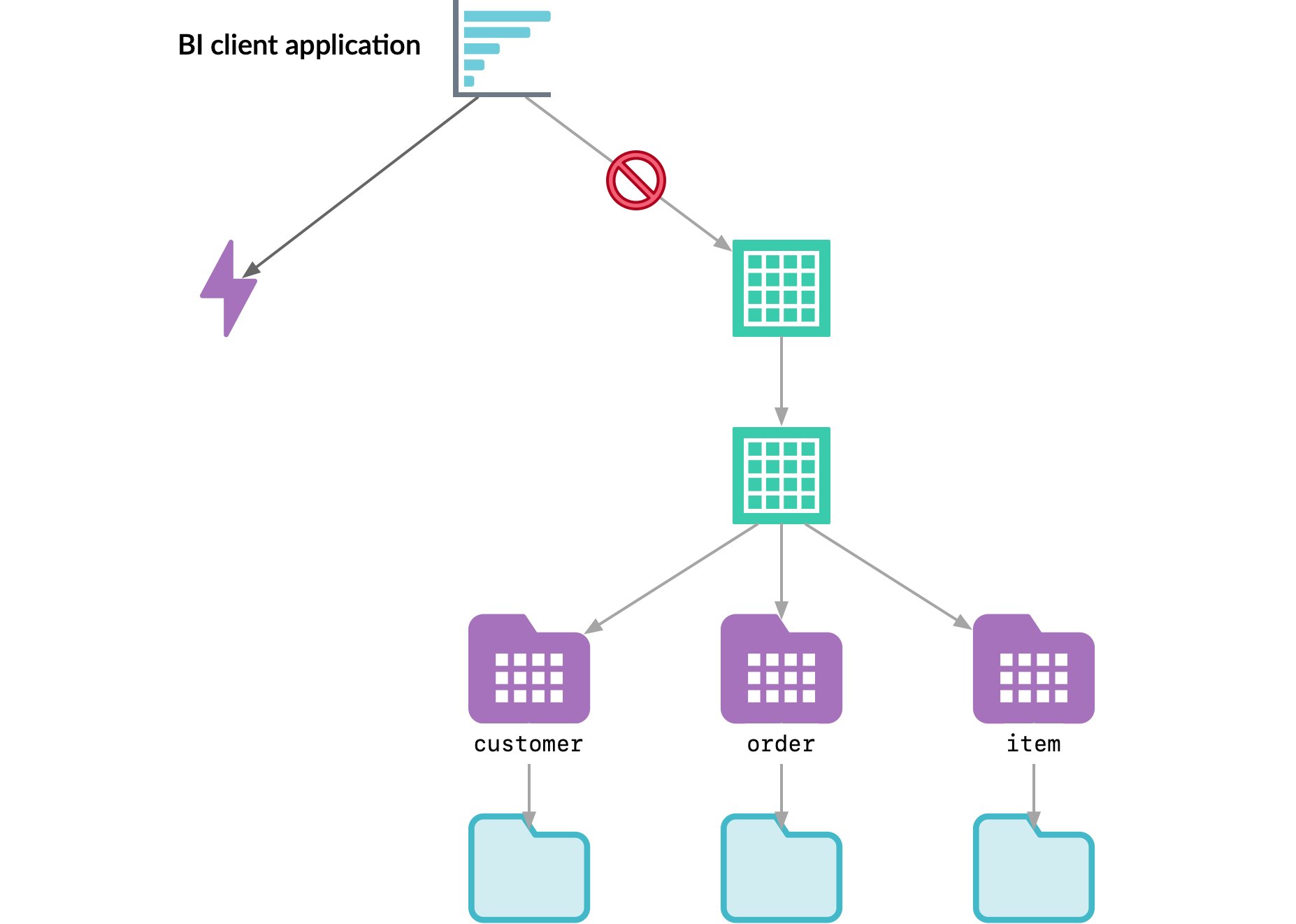 For example, suppose that three tables named customers, orders, and items are created from data sources. A data engineer filling a requirement for allowing single queries across all three tables creates a view named order_detail to join them: