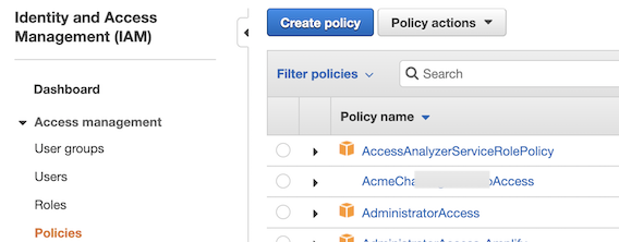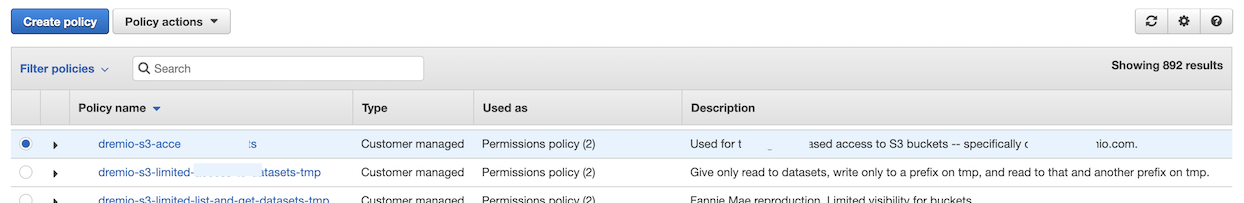 In the list of policies, check the box next to the name of the policy created in the previous steps. Use the Filter menu and the search box to find the policy if necessary.