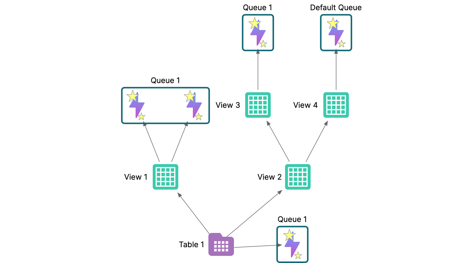 View 1 and View 3 do not inherit the setting from Table 1. If you want to run refresh jobs for the Reflections on those views in Queue 1, you must run the SQL command on those views and specify Queue 1.