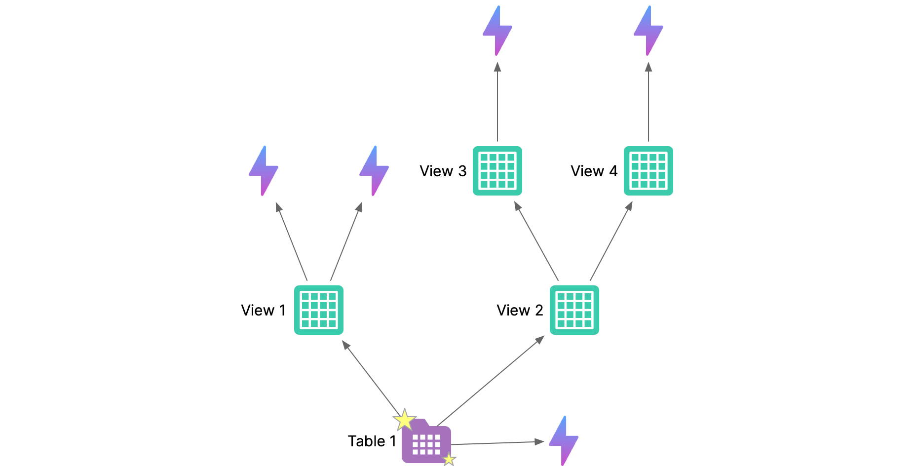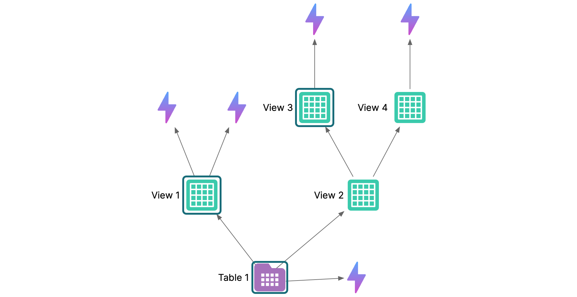 Suppose that you had the following tables, views, and Reflections, as shown in the first diagram: