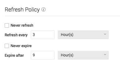 !- Never refresh -- Specifies how often to refresh based on hours, days, weeks, or never.